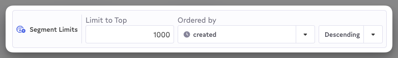 A limit can be placed on a segment to confine to a certain number of records. This is accessed when building a segment by clicking the ... menu item in the upper right. The process to add a limit is as follows.