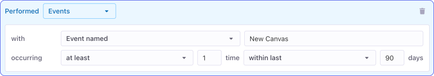 When the Dataset you're segmenting has a related Events Dataset, those events have even more conditions available, powered by the schema columns defined on the Event Dataset.