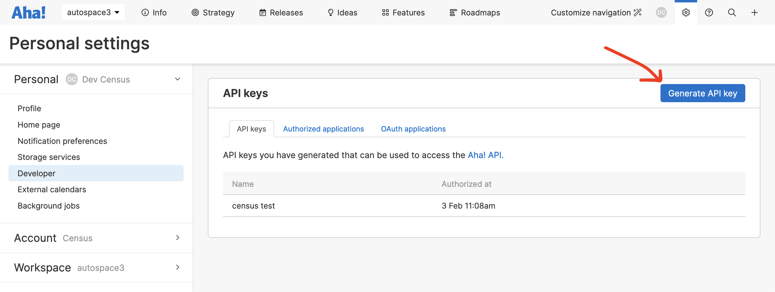 Generate an API key from the Aha app.