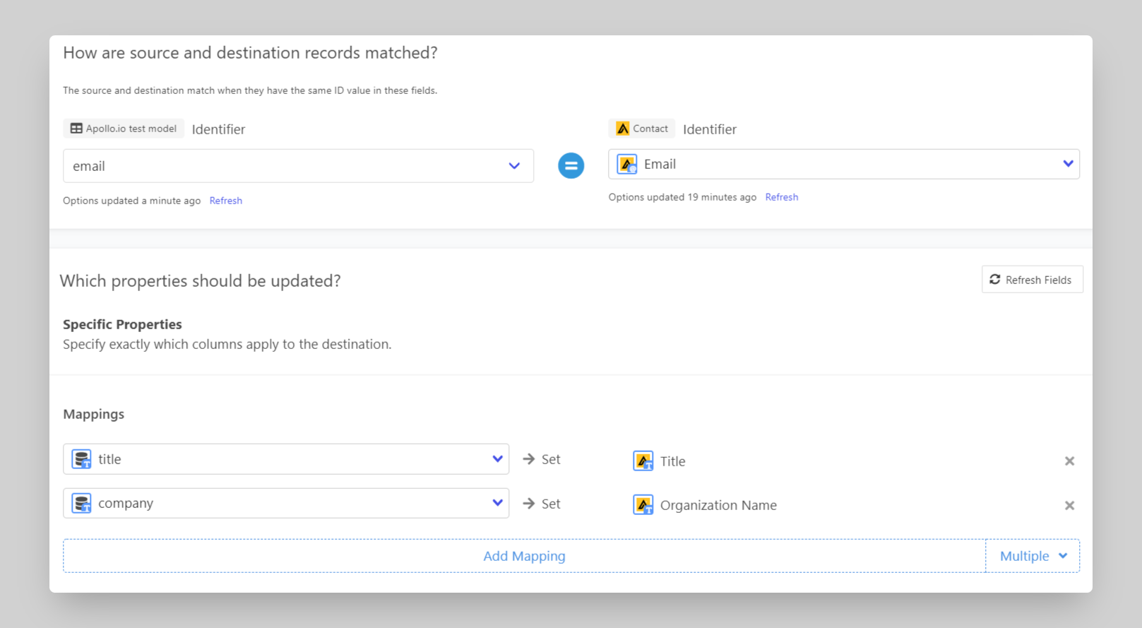 Finally, select the properties you want to update in the Mapper in the "Which properties should be updated?" section