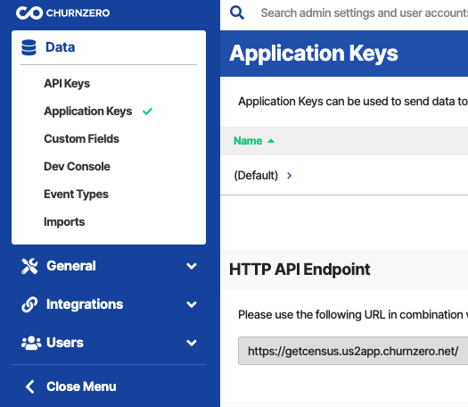 - Select ChurnZero from the menu.