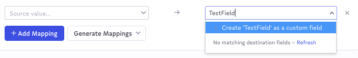 Custom fields defined in ChurnZero can be added to the sync mapping by manually entering the CZ API Name in the destination field mapping