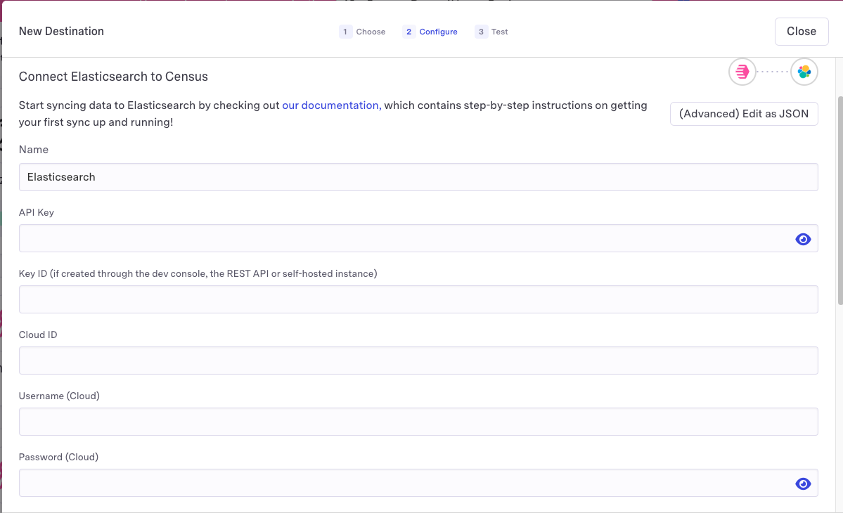 Activations needs the following information to create an Elasticsearch cloud connection:
