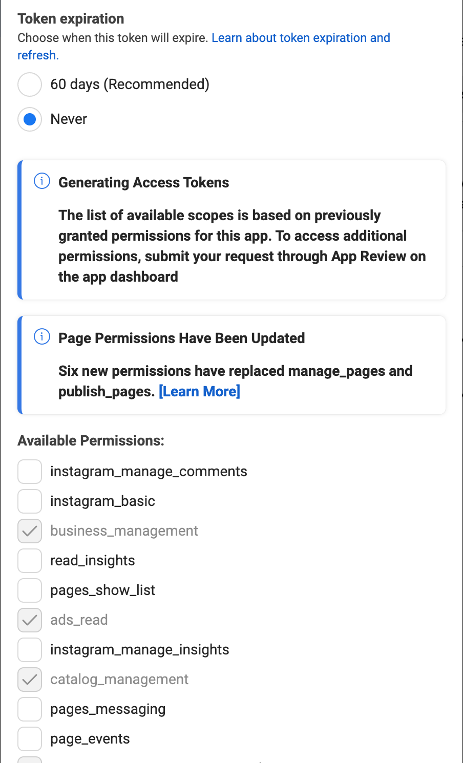 business_managementandcatalog_managementscopes for Activations to sync to your product catalogsMake sure to select