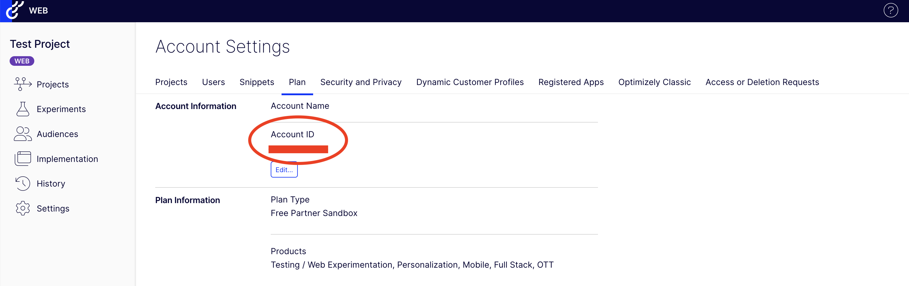 Get your Account ID from the Optimizely app.