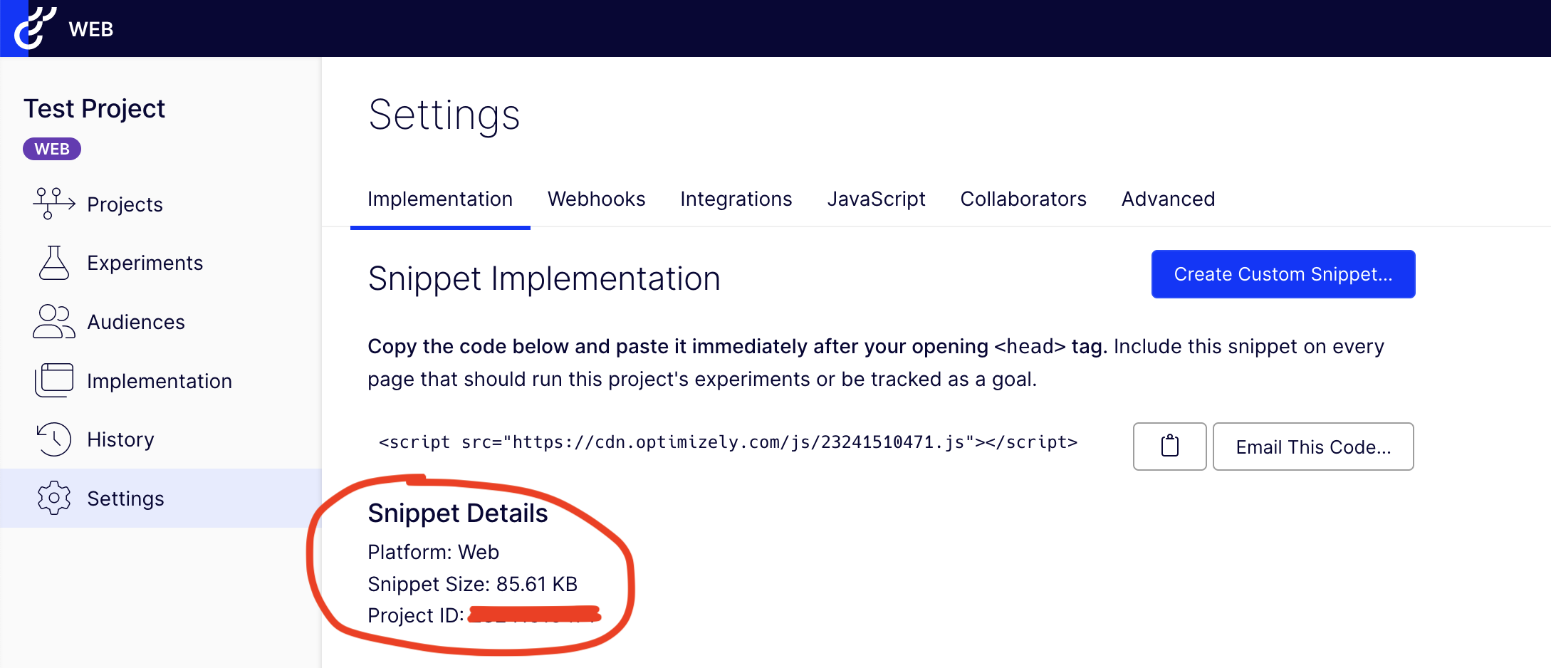 Get your Project ID from the Optimizely app.