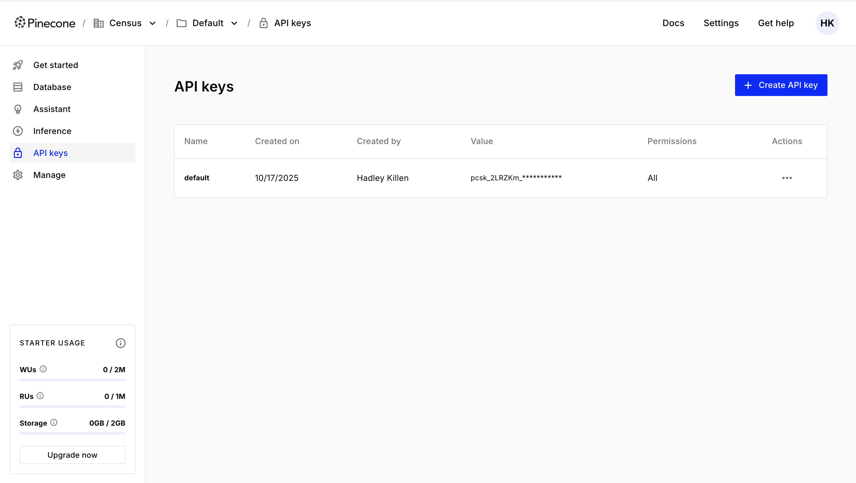 1. Collect your Pinecone Credentials
