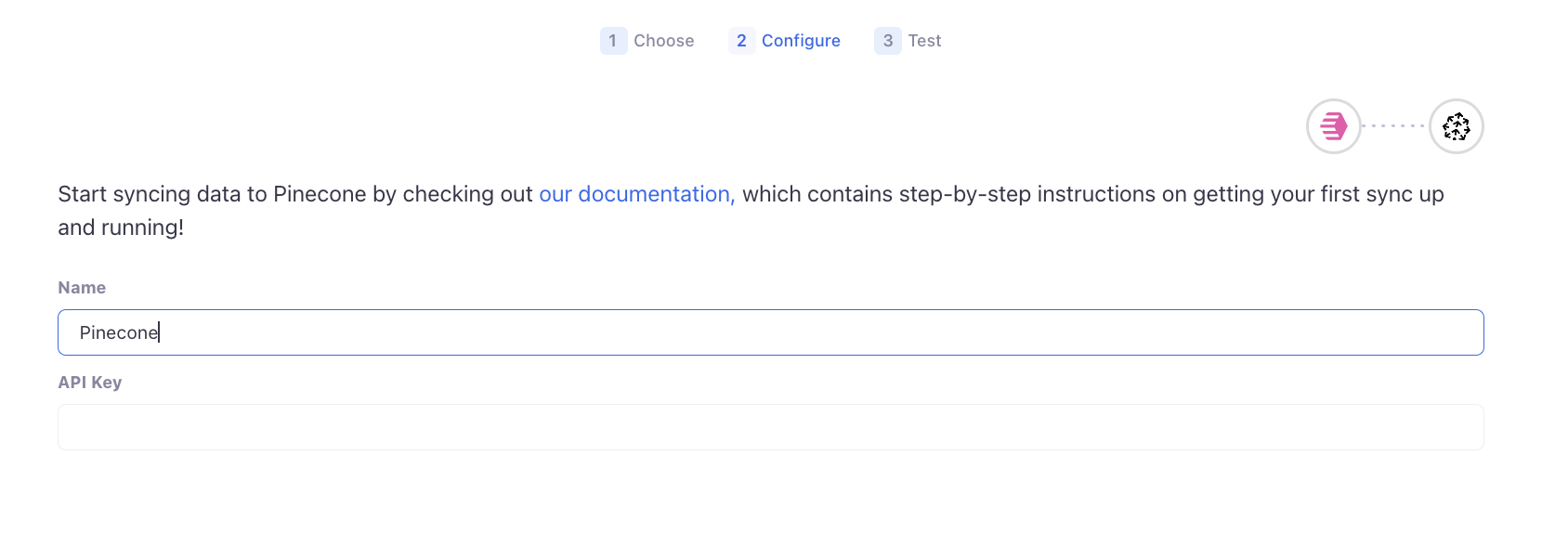 Activations needs the following information to create a Pinecone connection: