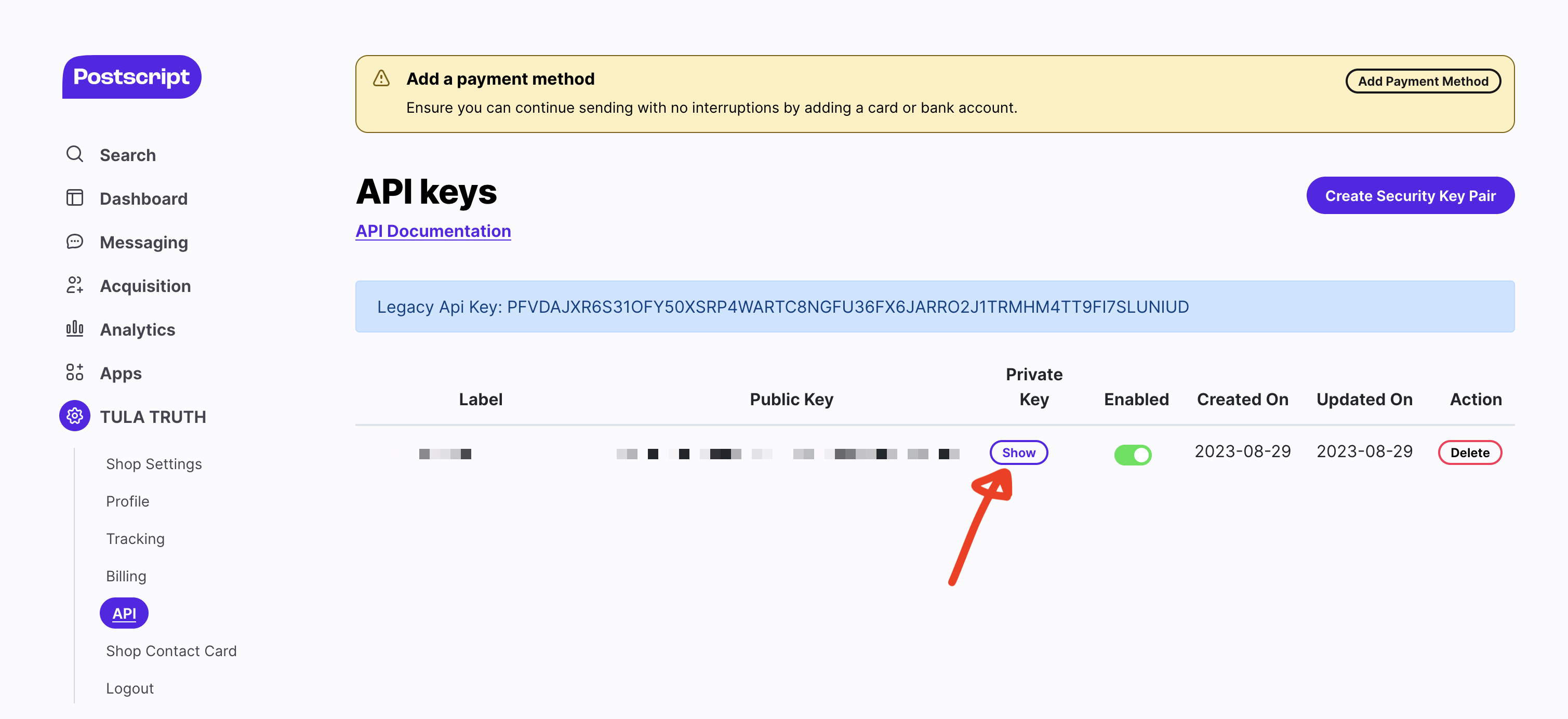 Copy your Private Key from the Postscript app.
