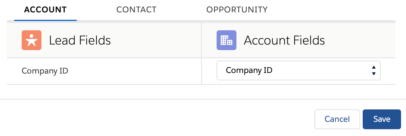 - Then, return to Lead in the Object Manager. Once again in Fields & Relationships and press the Map Lead Fields button in the top right. This UI will let you associate fields across a converted Lead. Create a mapping between your two external IDs and you're done!