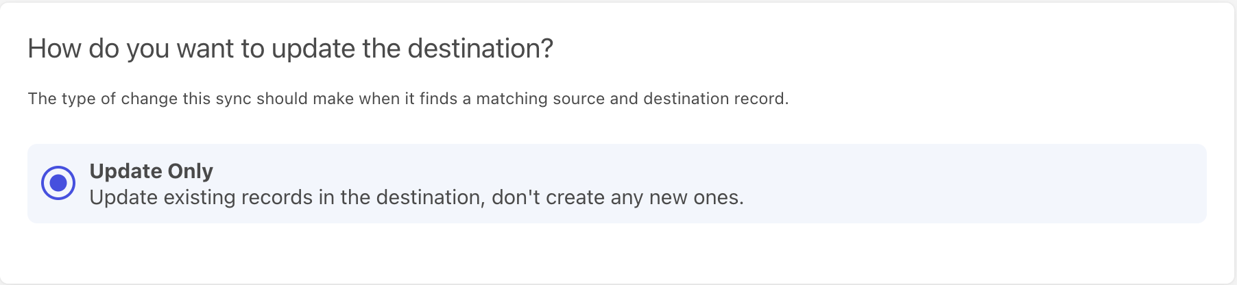 For the "How do you want to update the destination?" section.