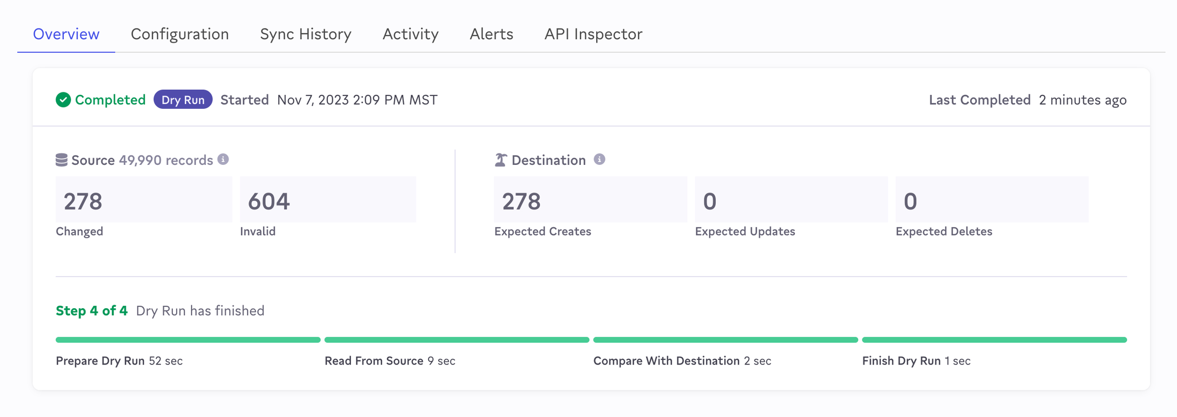 Dry Runs can be helpful to preview what will happen when a sync runs, without actually sending any data. Please see the product docs for more details.
