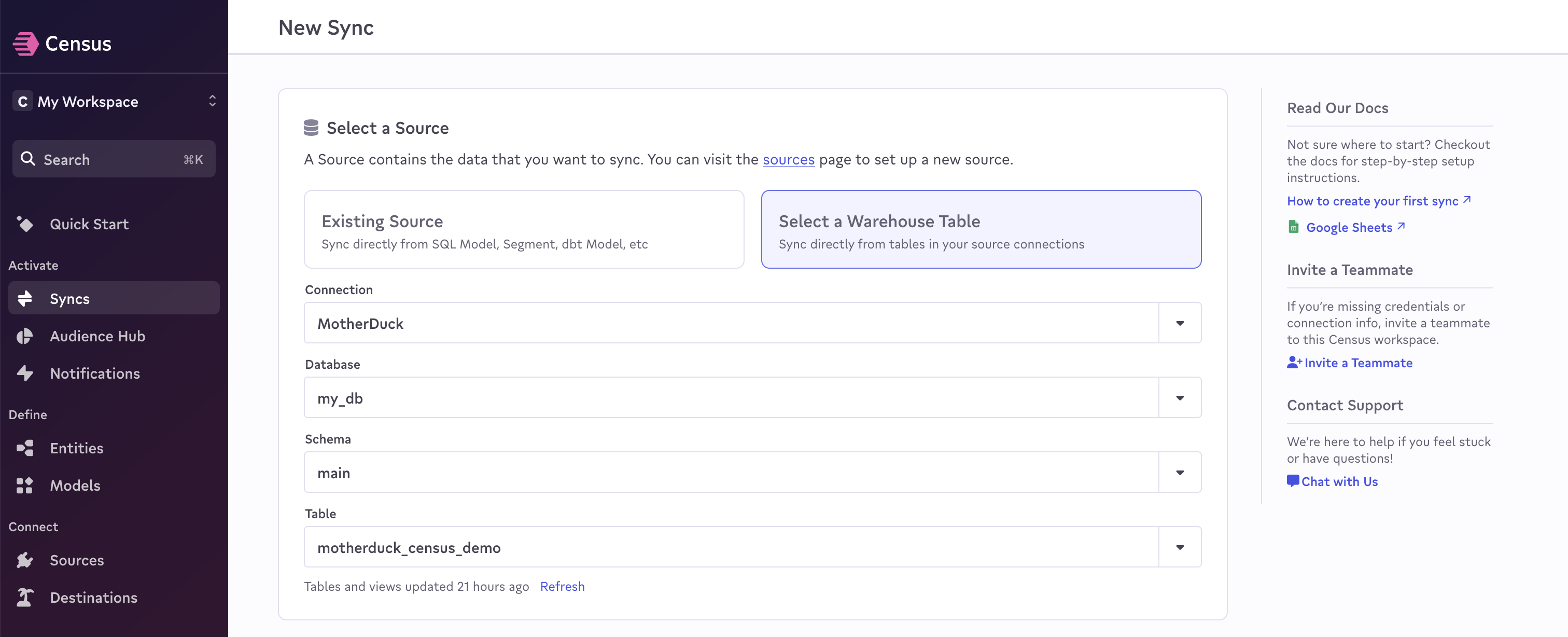 - If you haven’t already, sign up for MotherDuck and start a free Activations trial