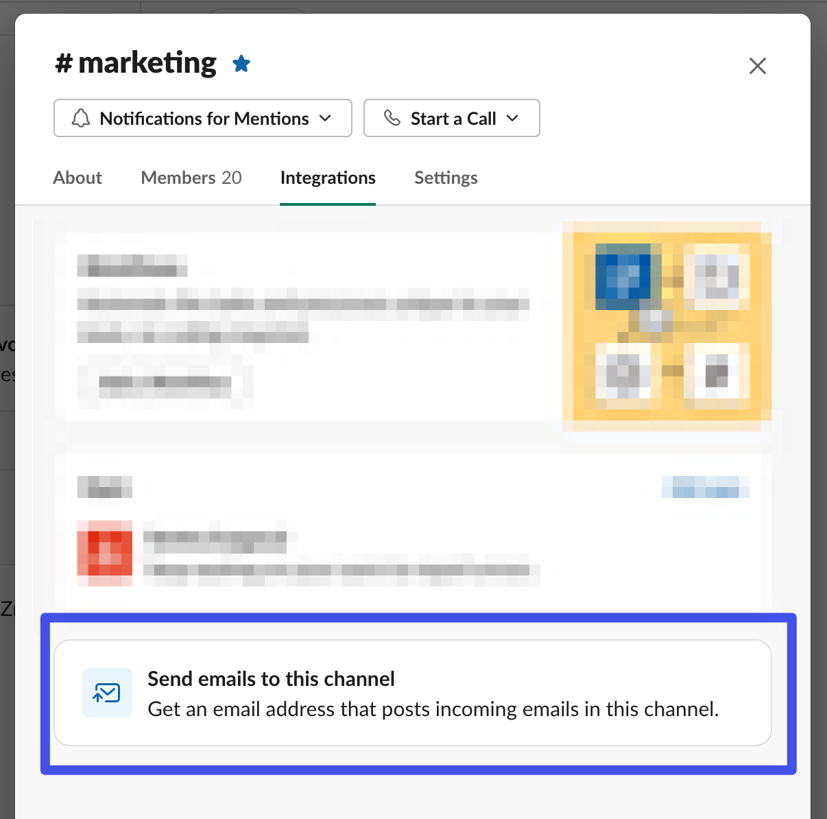 In Slack, find the email address for the channel you want to send alerts to. To do this click the channel name > Integrations