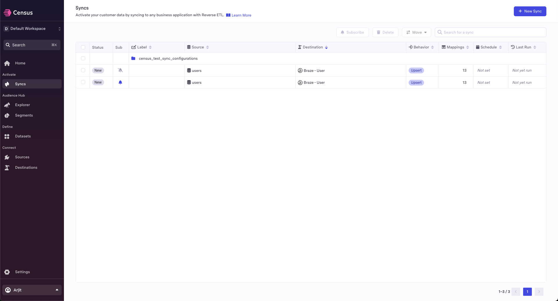 Each user can manage their own subscriptions to syncs. By default, you will be automatically subscribed to each sync in your workspaces. This behavior can be changed in your Personal Alert Settings.