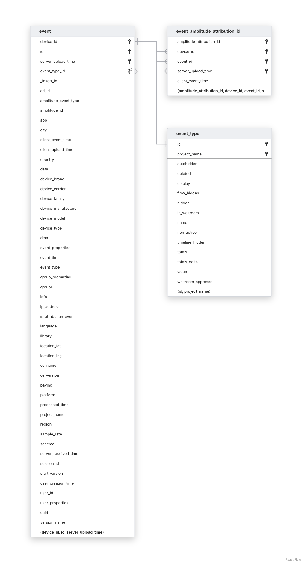 The primary key for the EVENT table is composed of the parameters id, device_id, and server_upload_time. Amplitude introduced the server_upload_time parameter on May 1, 2014. Earlier events do not have the server_upload_time parameter, which means we cannot form the primary key for them and thus cannot deduplicate the data. Other tables (except EVENT_TYPE) depend on the EVENT table. Therefore, to maintain data integrity, we sync Amplitude data from May 1, 2014 onwards.