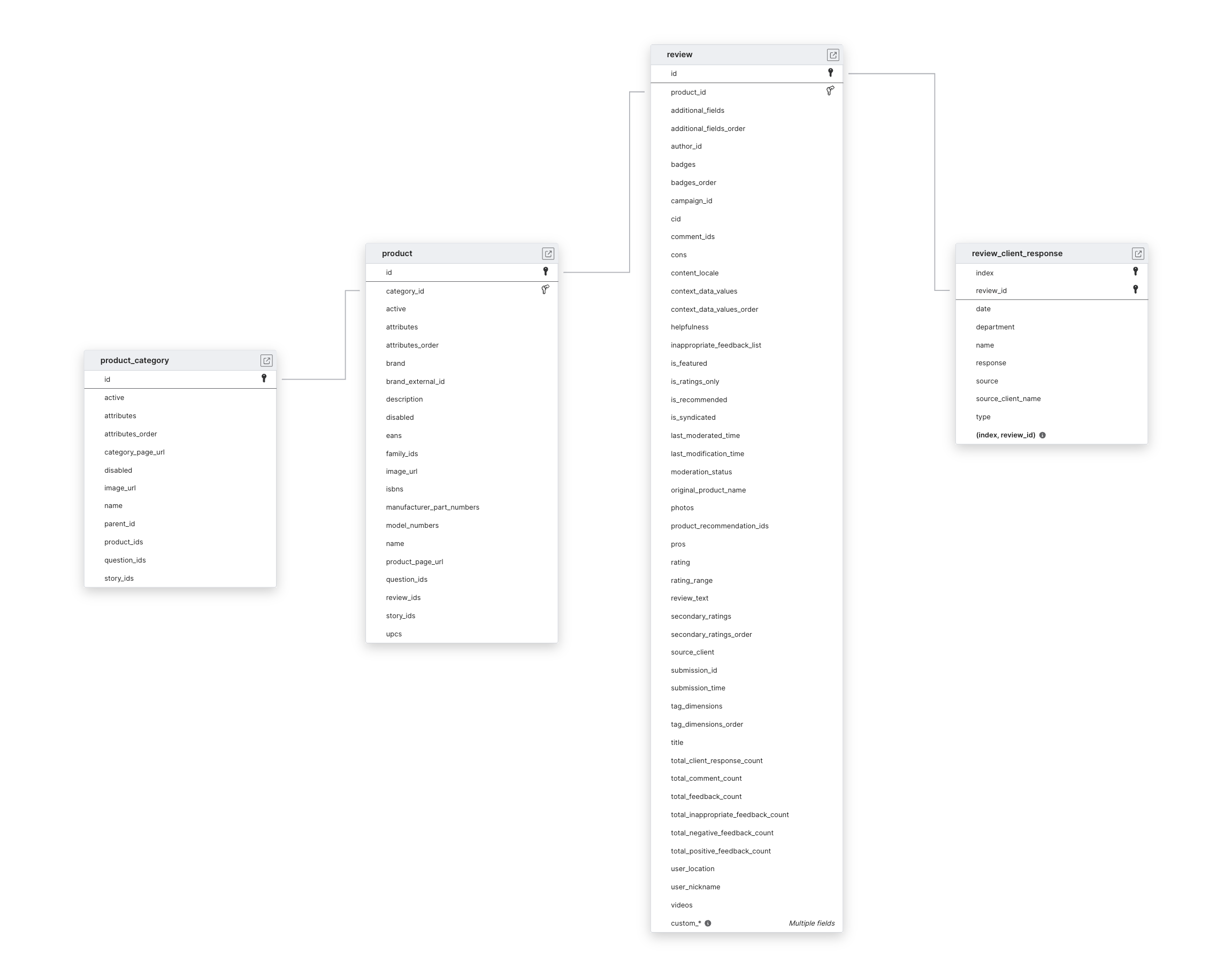 To capture new records and updates, we incrementally sync the REVIEW table and its child tables.
