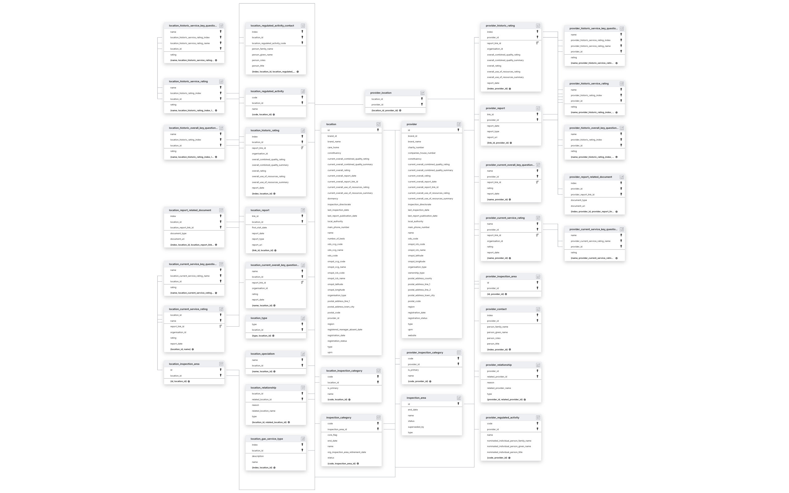 Explore Care Quality Commission schema ERD