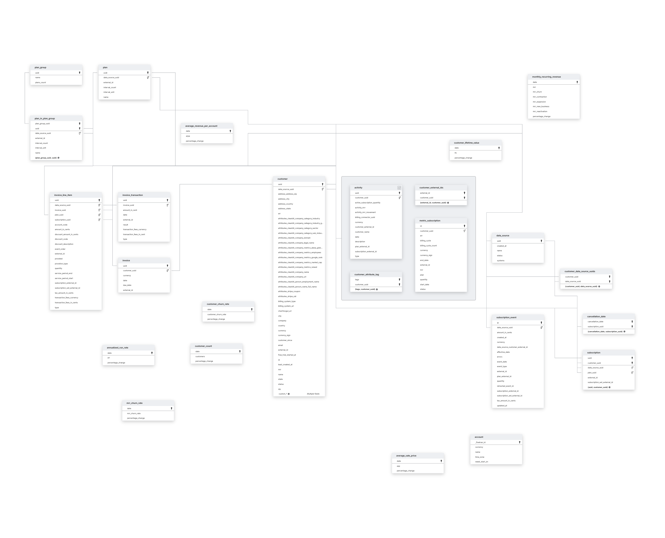Explore ChartMogul schema ERD