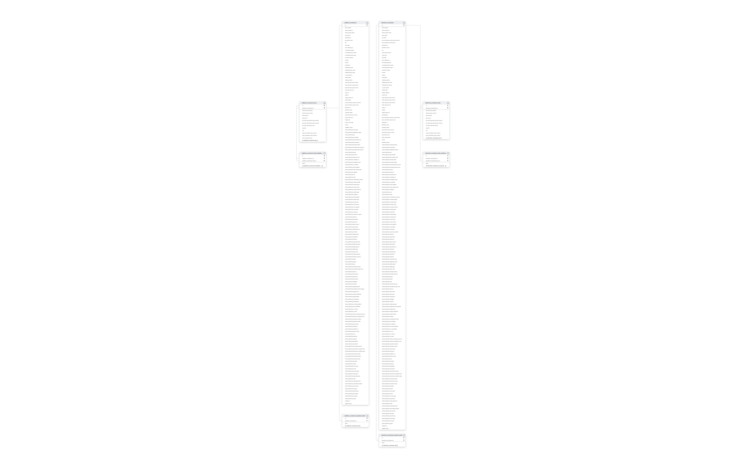 To capture new records, we incrementally sync the ADVERTISER_COMMISSION and PUBLISHER_COMMISSION tables and their child tables.