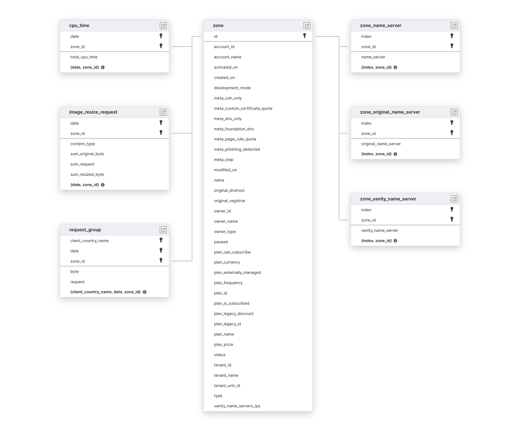 Explore Cloudflare Analytics schema ERD