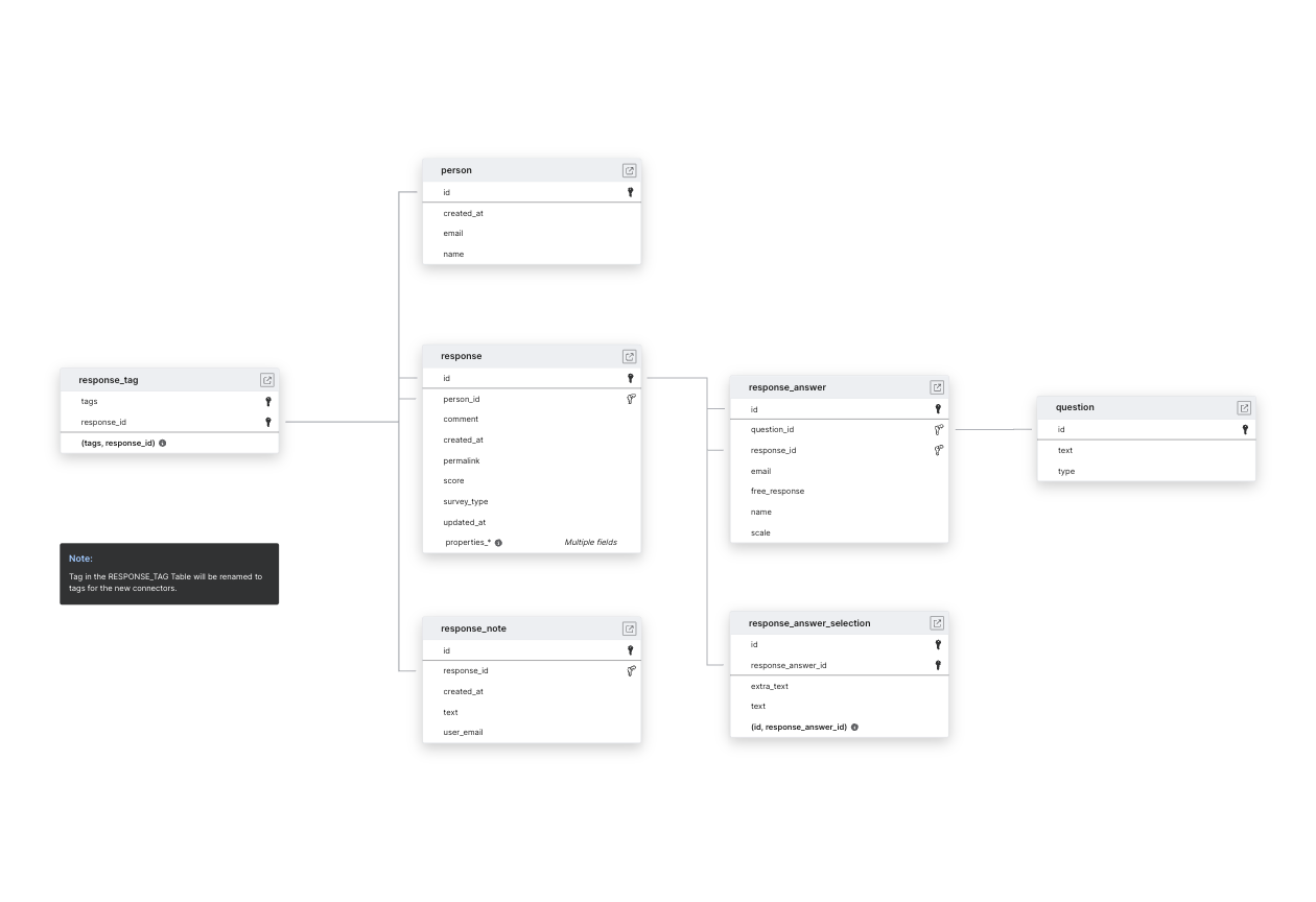 For eNPS survey type, we do not sync records in the PERSON table because they are anonymous, and Delighted does not associate the survey response with any contact information.