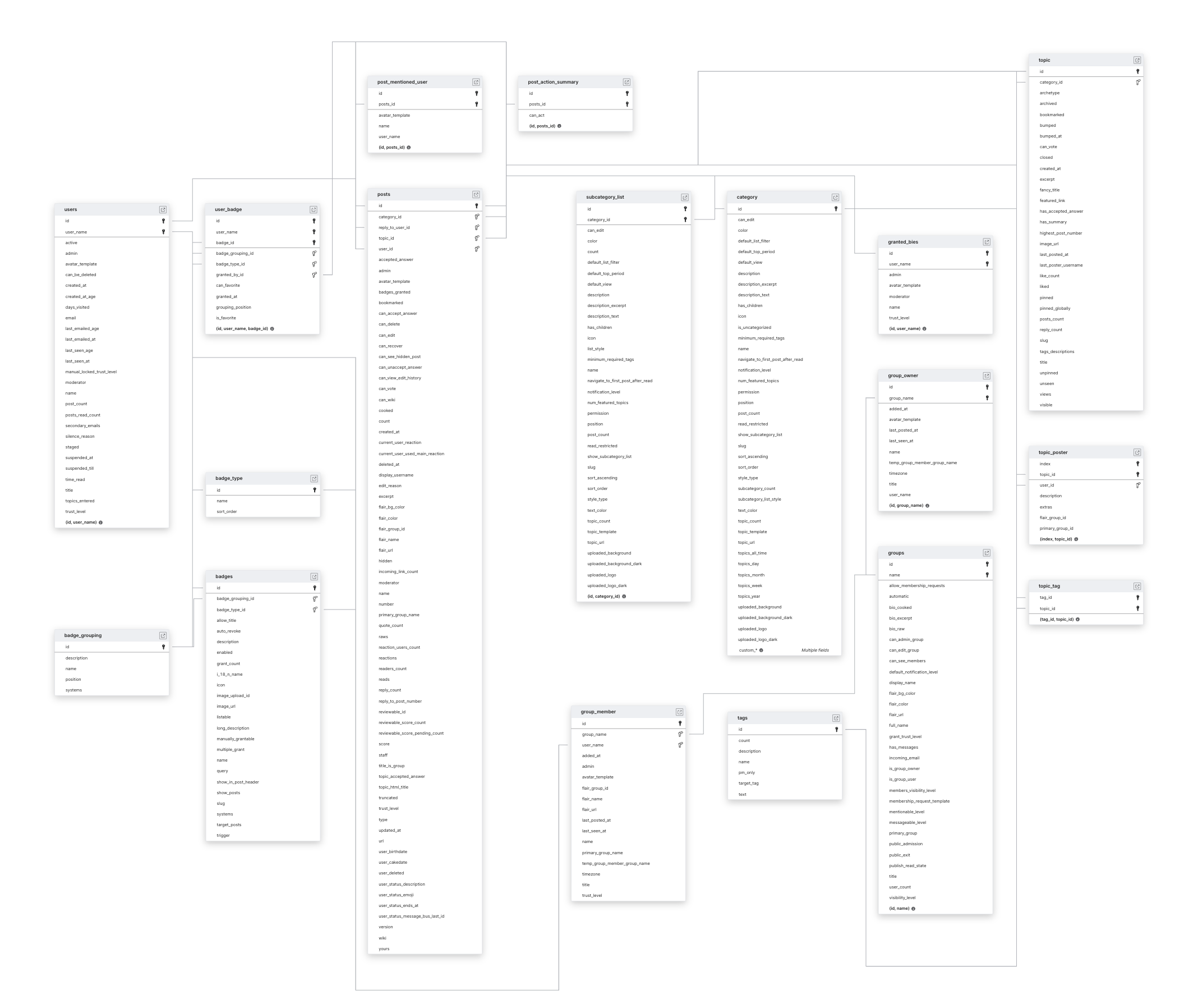 Explore Discourse schema ERD