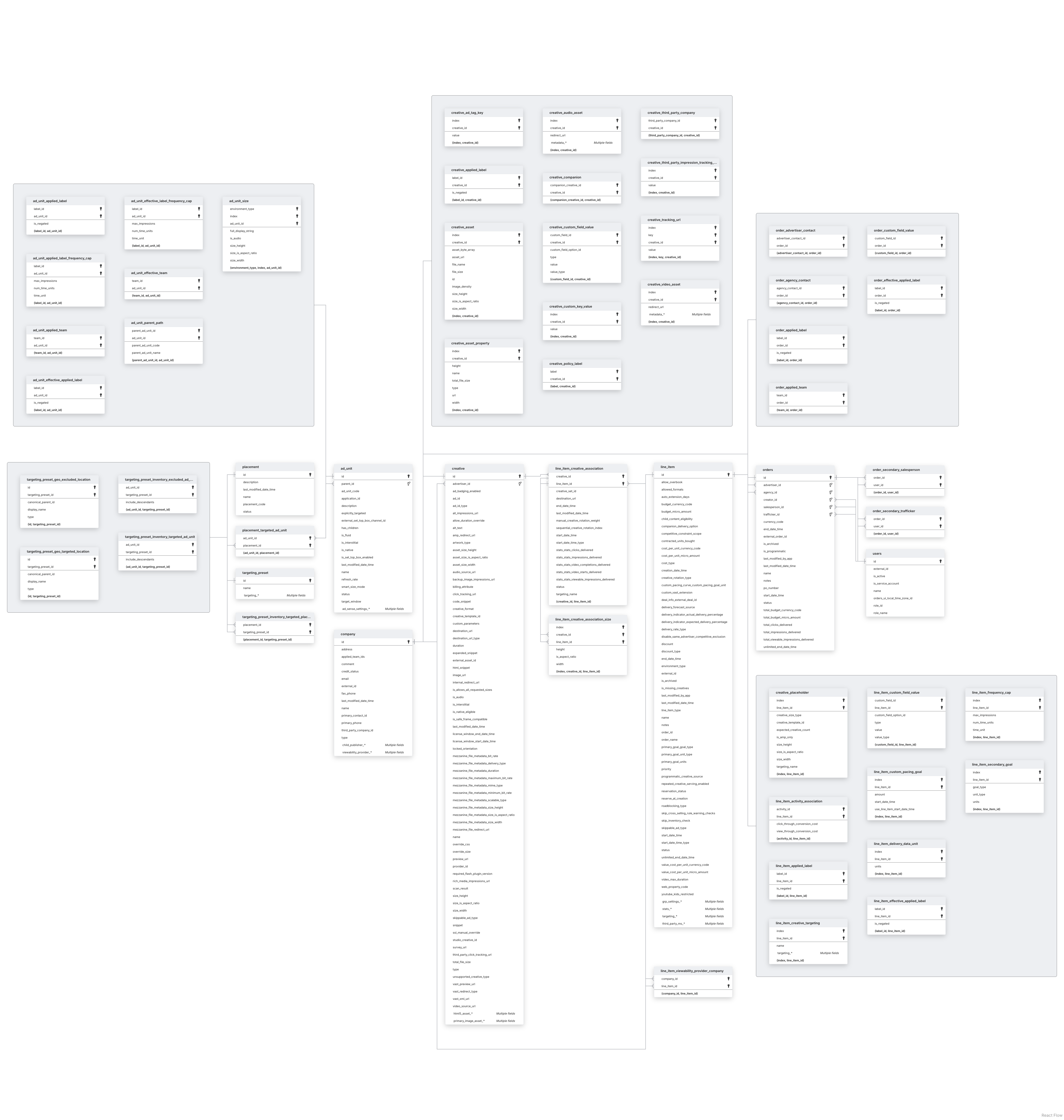 For metadata tables, we request and update all accessible data during each sync. See the Google Ad Manager ERD for a full list of metadata tables the connector can sync.