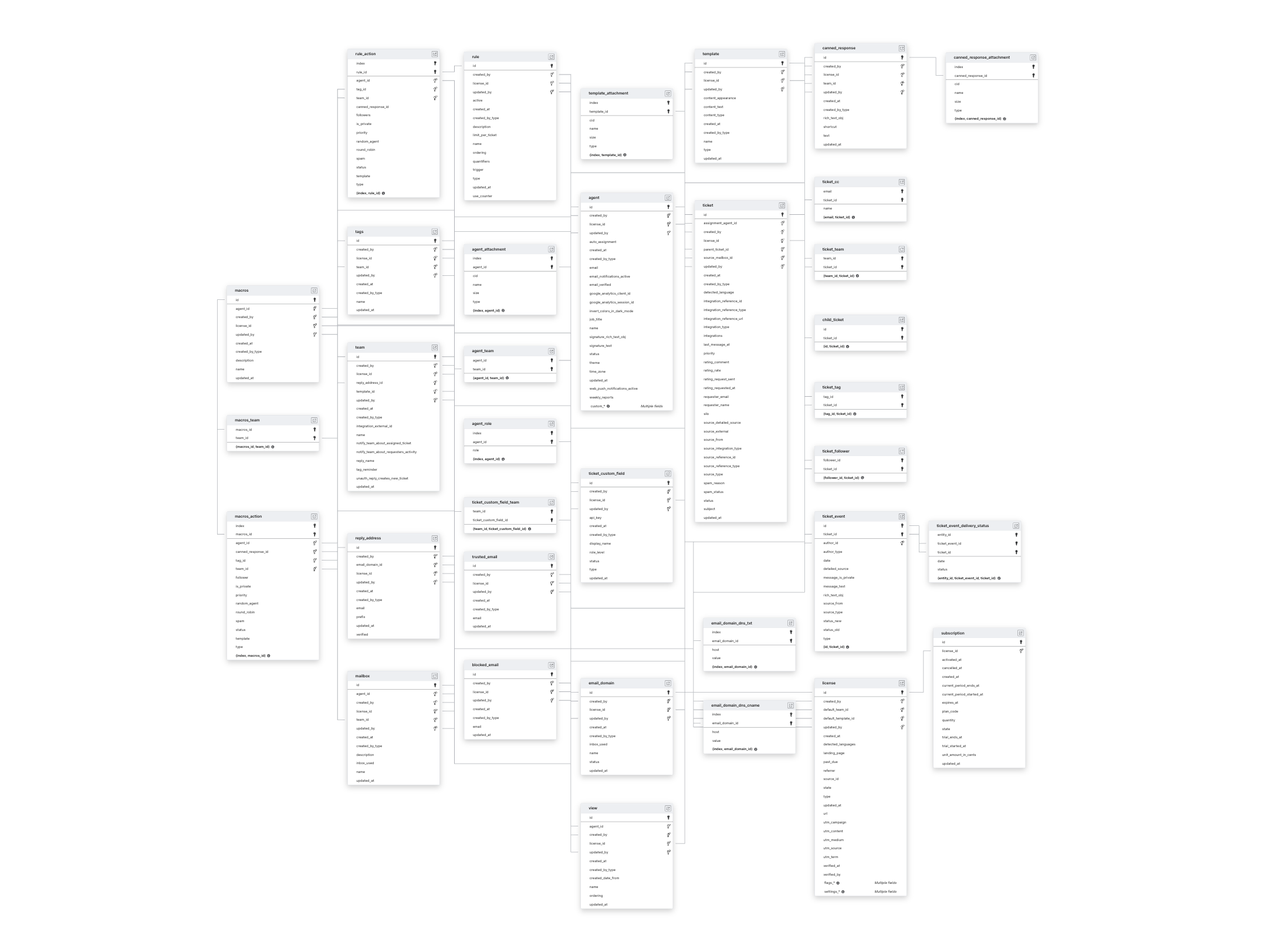 | Capture deletes | check | AGENT, BLOCKED_EMAIL, CANNED_RESPONSE, CUSTOM_FIELD, EMAIL_DOMAIN, LICENSE, MACROS, MAILBOX, REPLY_ADDRESS, RULE, SUBSCRIPTION, TAGS, TEAM, TEMPLATE, TRUSTED_EMAIL, and VIEW tables. |