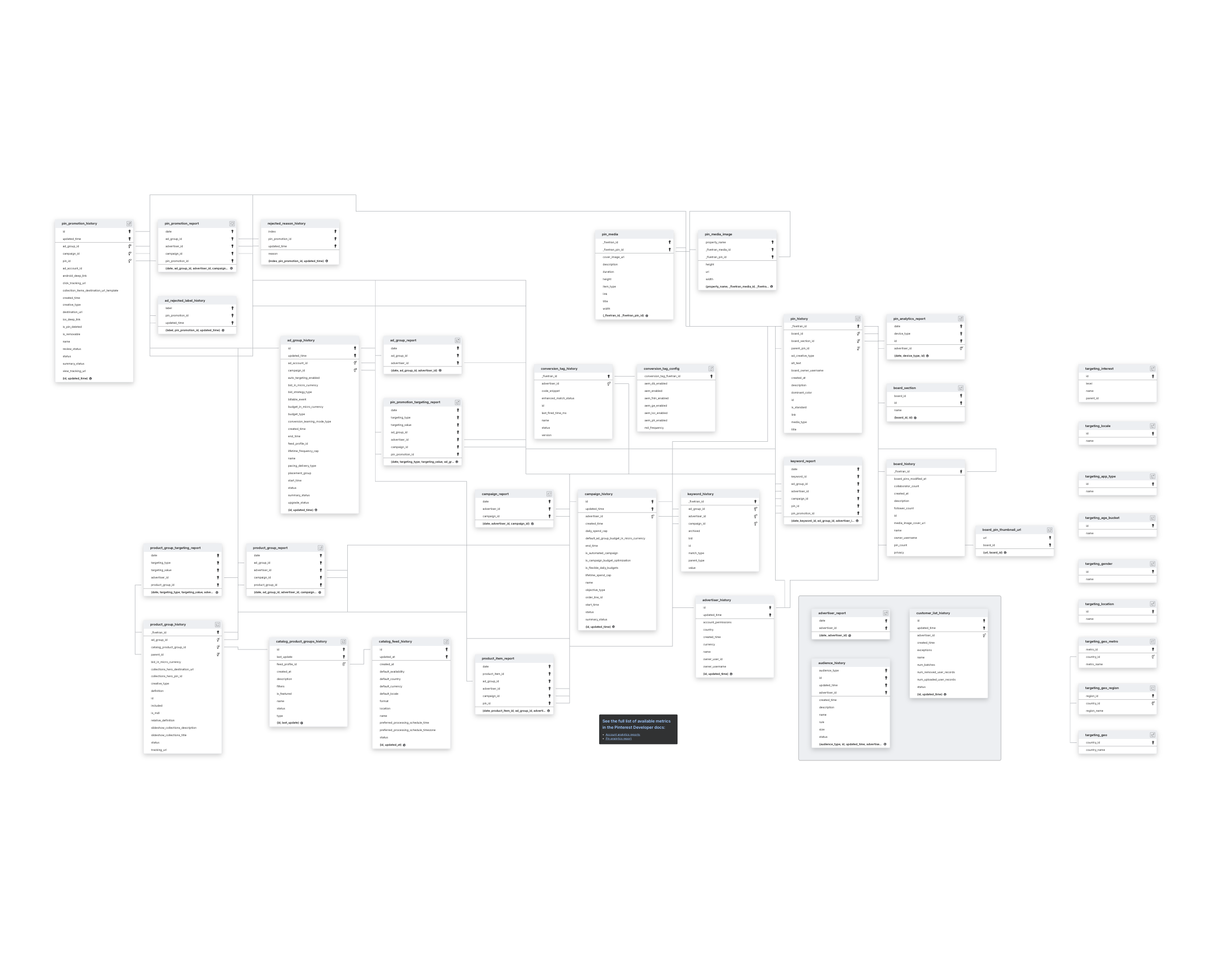 This schema applies to all Pinterest Ads connections.