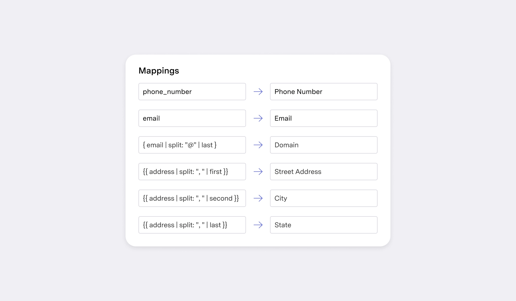 - I want the phone number column in my database to map to a specific “Phone Number” column in my CRM.