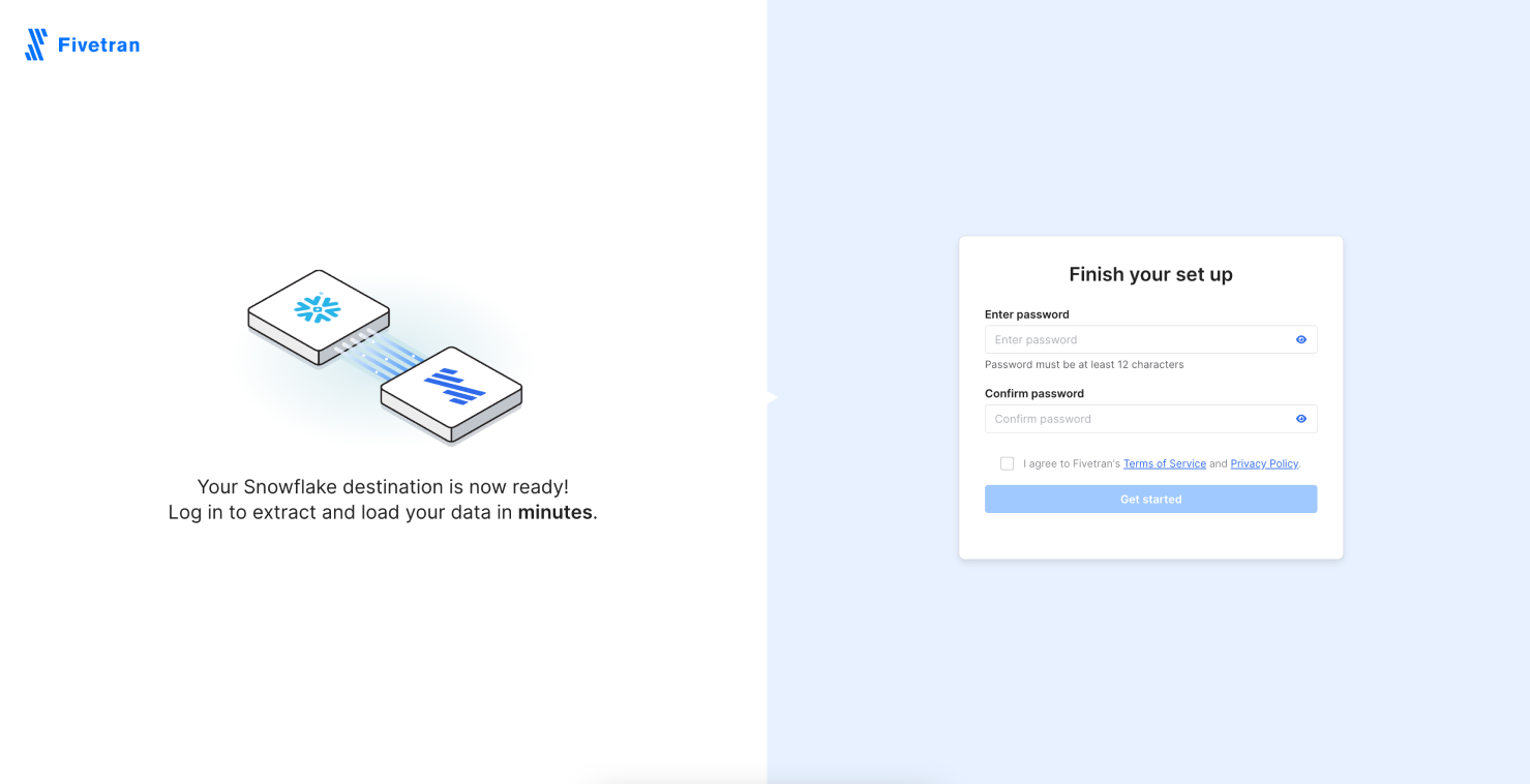 Snowflake Partner Connect lets you quickly and easily create a Fivetran trial account that integrates with Snowflake. Once your trial is created using the seven simple steps below, deploy connections in under five minutes and automatically adjust to source changes, so your team can focus on generating insights instead of wrangling data. Fivetran also cleans and normalizes source data, so you can load it into your Snowflake warehouse and run complex queries immediately.