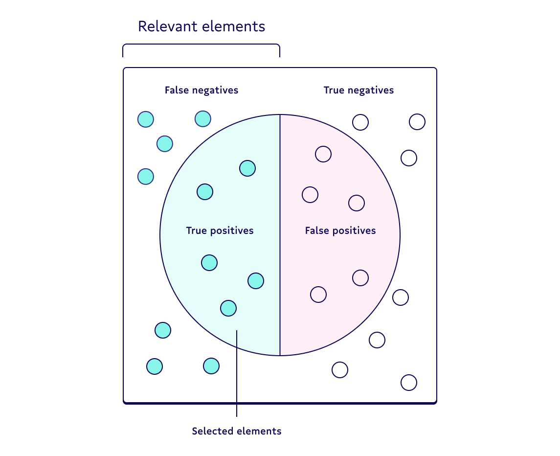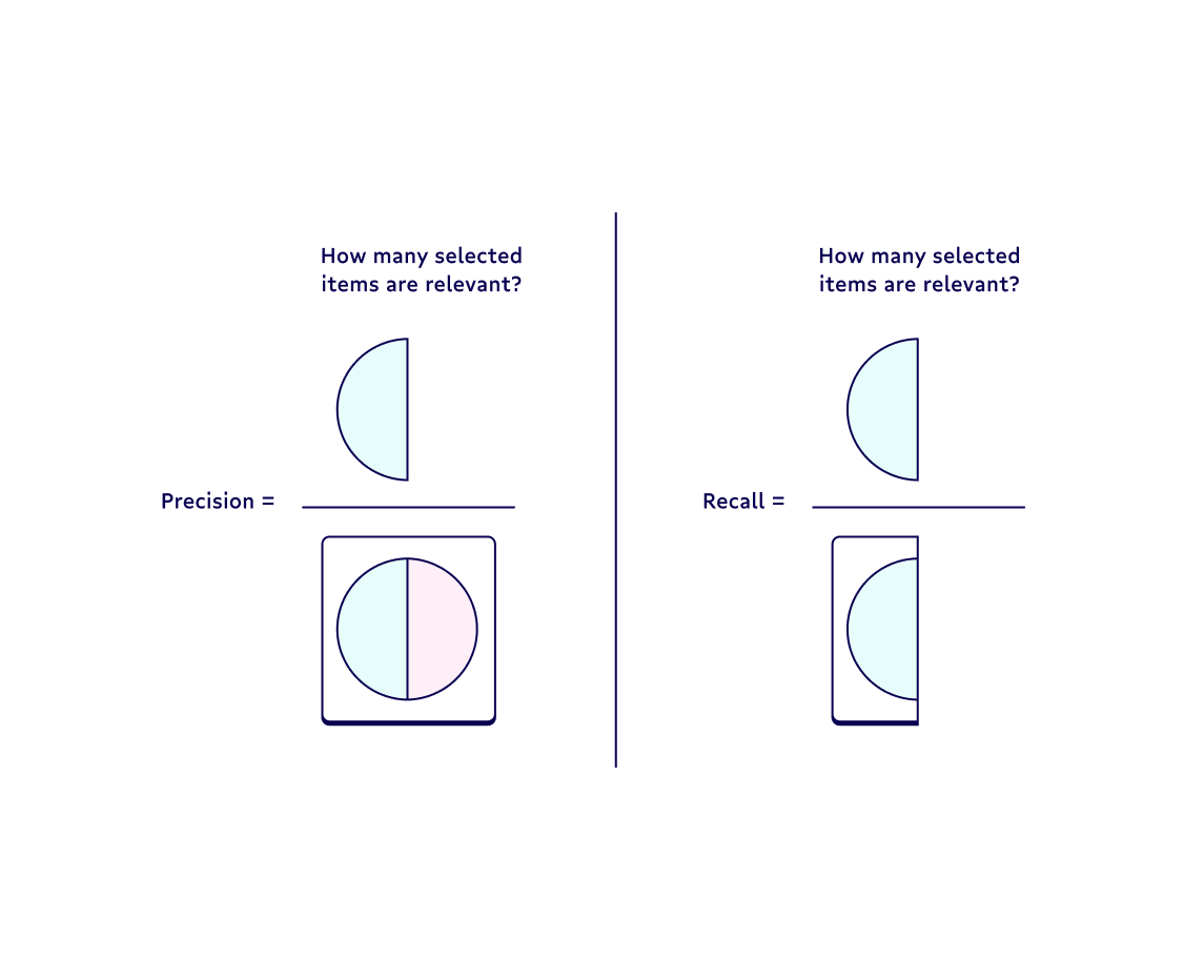 Each has its own pros and cons. You should weigh the strengths and weaknesses of each based on the business problem at hand. If you're a more visual person, check out the image below, which breaks down the difference between precision and recall metrics.